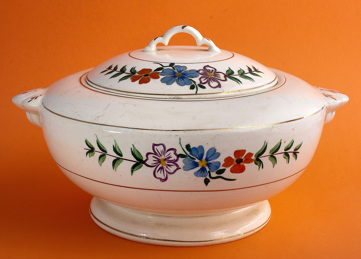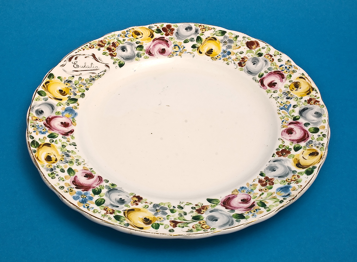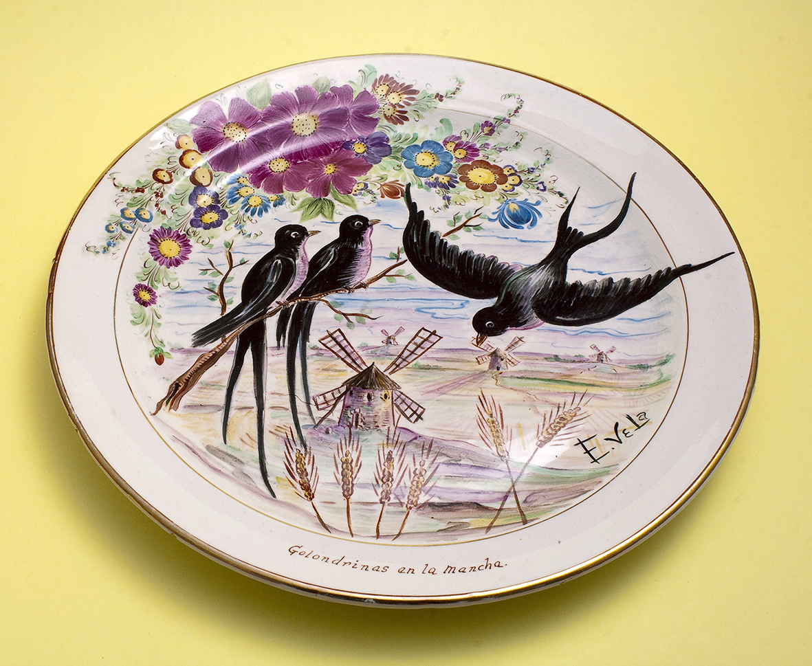 El trabajo consistía en decorar las piezas de loza blanca, fileteándolas y añadiendo dibujos de flores, cenefas o personalizándolas con iniciales. Vajillas, soperas, bandejas, juegos de café, tazones… todo admite ser decorado, y una vez pintado se fijan los colores metiéndolos en enormes hornos para cocer los esmaltes. Decoraban también baldosas, siempre con motivos andaluces o manchegos, fuentes, parques, monumentos, procesiones, ángeles sonrosados, para colgar en la pared o para confeccionar otros objetos, por ejemplo paragüeros.