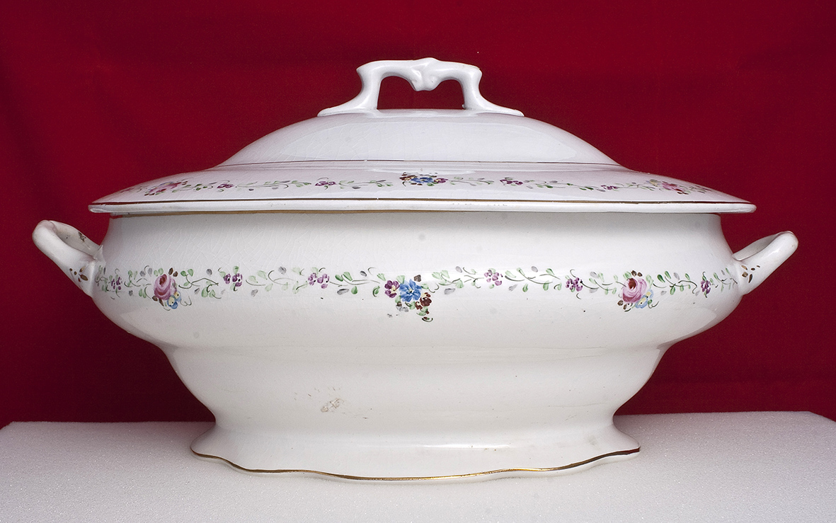 No todo el trabajo es creativo hay que desembalar las piezas en blanco, limpiarlas antes de ser decoradas, embalarlas para ser enviadas a los clientes. Las decoraciones en la loza eran variadas, estaban las pintadas, las que tenían una calcomanía que consistía en que después de limpiar los platos se daba con una brocha una especie de cola para fijar el papel del dibujo, después con una esponja mojada se apretaba bien, luego se quitaba el papel y se lavaba para quitar el pegamento y una vez secos se pintaban los filos del borde, que popularmente se llamaban filetes. Este detalle lo hacía la persona mas experta, normalmente estos bordes se hacían del color del dibujo y de oro auténtico que encarecía el producto. Una vez decorada la loza, un oficial metía las piezas en el horno.