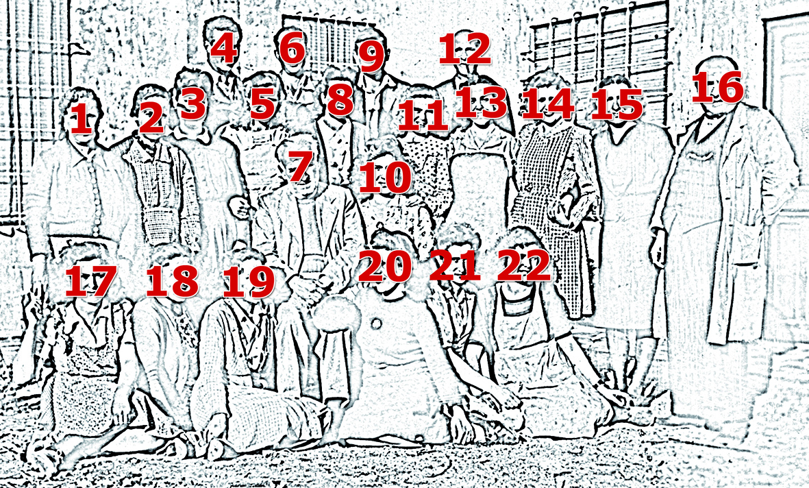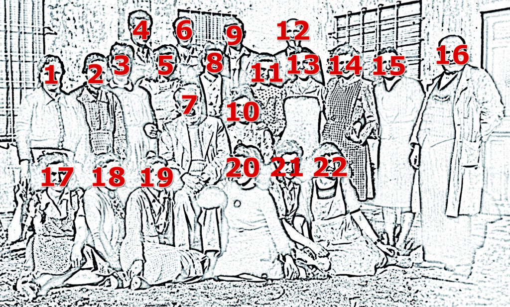 Nota: Pertenecieron también a la plantilla: Isabel Escribano, Catalina Escribano, Delfín Marcos de León, Emiliano Vela, Enrique Escobar, María Salmón, Alfonso Álvarez, José Campo, Guillermo “Cartagena”, Amalarico, “El tío Angora” y demás carreros, embaladores, empacadores y demás personas que se nos han podido olvidar.