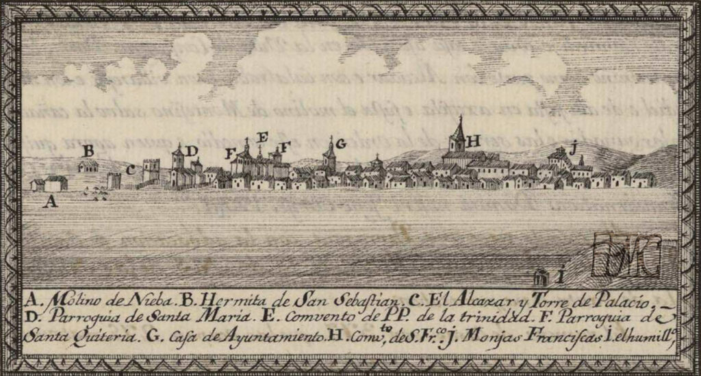Grabado de Domingo Aguire. El gran Priorato de San Juan de Jerusalen en el campo de La Mancha, 1769.