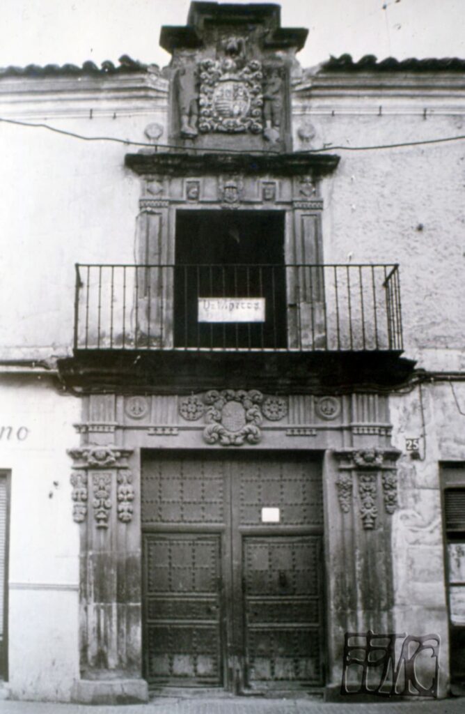 El edificio donde se encuentra actualmente la fachada fue construido en los años 80 del siglo XX; se puede encontrar fácilmente el BOE de 12 de abril de 1972 donde se dice que el Ayuntamiento de Alcázar dona al estado este solar, y que sería destinado a Biblioteca Pública, aunque aquí se le llamaba la Casa de la Cultura, un nombre mucho más adecuado, ya que aparte de la Biblioteca albergaba el Archivo Histórico, salón de actos múltiples, sala de idiomas y sala de proyección