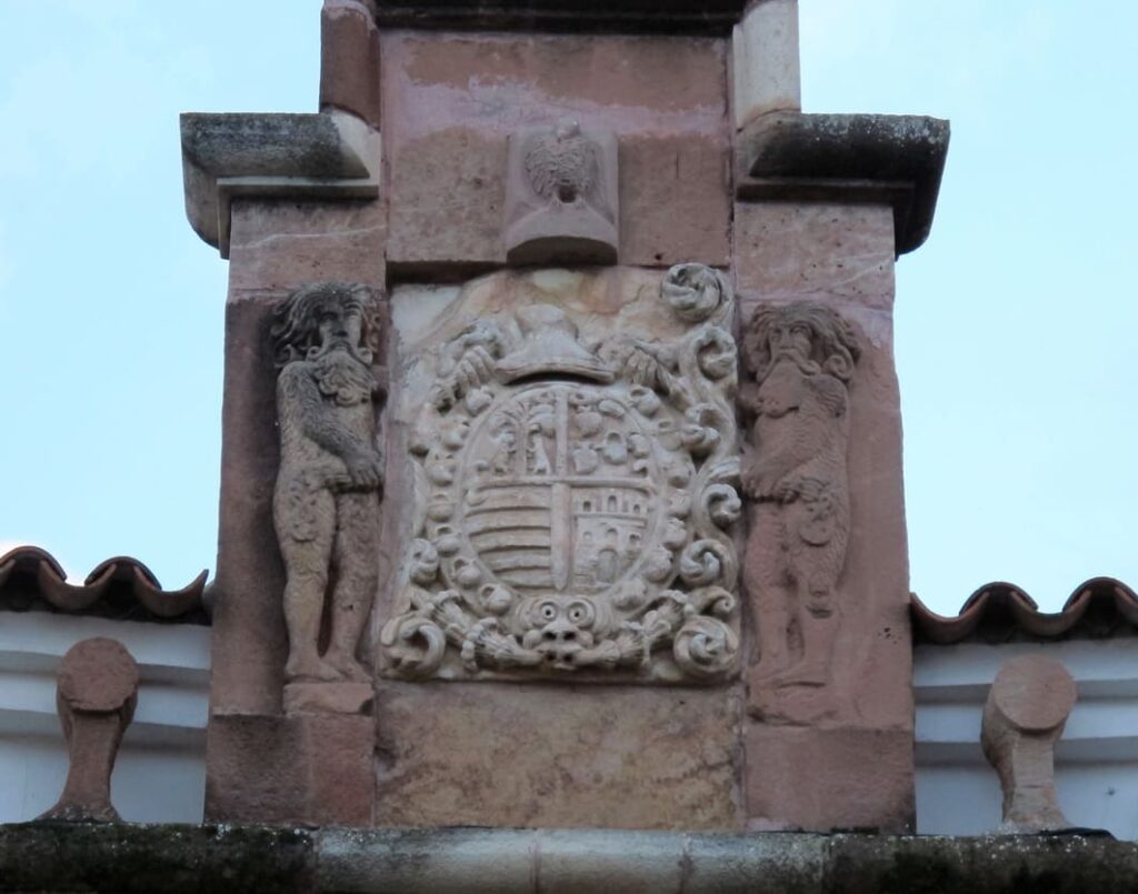En cuanto a la atribución de los escudos no está muy claro a quién pueden pertenecer, en la única obra donde se han estudiado estas armas “Linajes y Blasones de Ciudad Real” los autores creen que el escudo inferior puede ser atribuible a Francisco Melgar, familiar de la Inquisición y probable descendiente de Diego Melgar, que emigró con 20 años a Cartagena de Indias donde fue un famoso familiar de la Inquisición; y con respecto al escudo superior creen que puede pertenecer al caballero de la Orden de Montesa Tomás López Guerrero Quintanilla Salcedo y Espinosa, nacido en Alcázar y cuyos orígenes familiares se encuentran en Villafranca de los Caballeros.