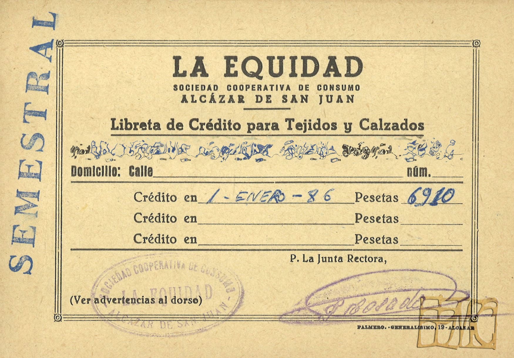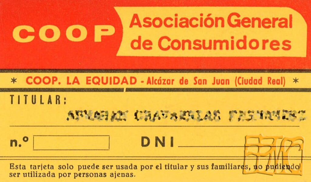 Ir a la cooperativa, era ir de compras. Hace 30 años, la forma de comprar y vivir no era la misma que ahora. Un buen ejemplo era la reunión de una buena dote para las muchachas casaderas, ¡menuda ilusión! Para las madres de Alcázar de San Juan y alrededores los ajuares eran comprados a plazos, a crédito, para tenerlo en el momento de su boda. Por eso ir a la cooperativa era ¡ir de compras, ir de fiesta!; adquirir artículos que iban a estar contigo todo el año, toda la vida. Para poder ir a comprar a “La Equidad” en un primer momento había que ser socio y para ingresar como tal en la cooperativa, bastaba con una petición por escrito del interesado que tenía que estar avalada por dos socios; al objeto de posibles reclamaciones, se fijaba un plazo de respuesta de 8 días, transcurrido el cual la Junta Rectora, en única instancia, acordaba conceder o denegar la petición.