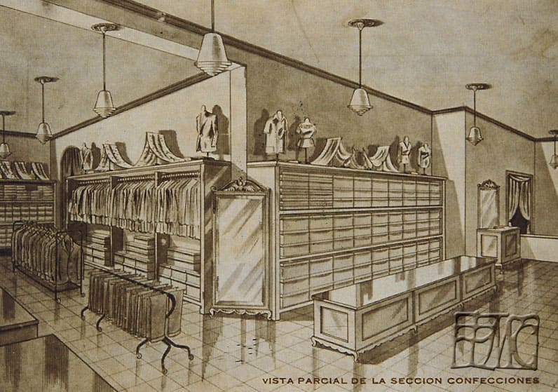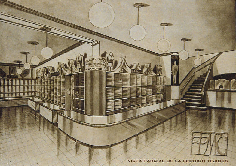 El edificio contaba con dos plantas: en la planta baja estaba instalado el despacho al público con tres secciones: comestibles, paquetería y derivados, y la de tejidos-calzados; y en la planta alta estaban instaladas las oficinas y el almacén.