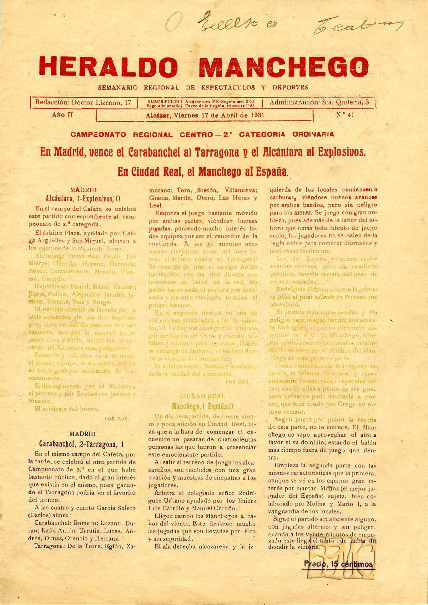 (6) En Pueblo Manchego, 15 de abril de 1931. Hemeroteca de la Biblioteca Municipal de Ciudad Real. ↩ volver