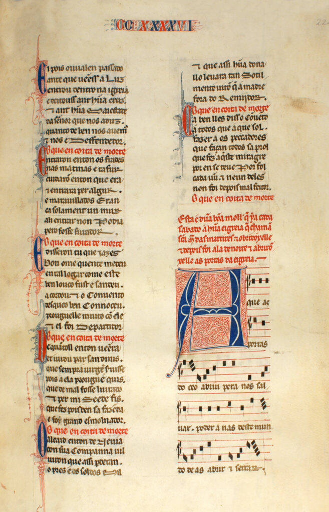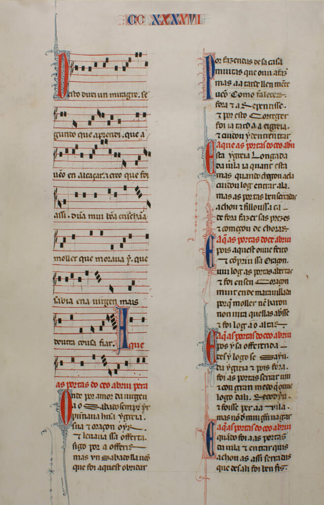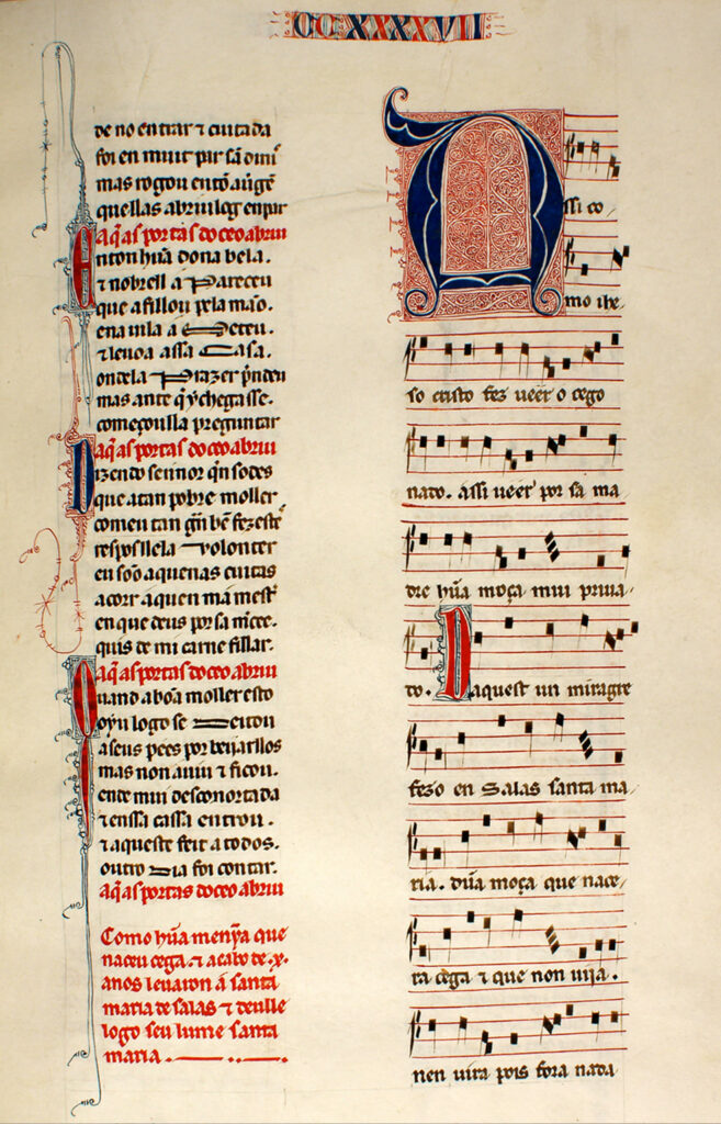 Según Menéndez Pidal (1986: 25), con esta cantiga se abría el códice Florentino, la segunda parte de las cantigas, que comenzarían con el códice de El Escorial. Según el autor, el tipo de letra, sus espaciados, el número de líneas por página, incluso el picado para pautar la notación musical, son idénticos, indicando que ambos códices salieron del scriptorium de Alfonso X. En esto coincide Ángela Franco (2006: 218), que indica que el códice florentino se trata del segundo volumen de la edición alfonsí miniada, conservada en El Escorial con el nombre de Códice Rico, al mismo tiempo que señala que las miniaturas de este códice Florentino “constituyen uno de los capítulos más excelsos de las artes figurativas en Europa”.