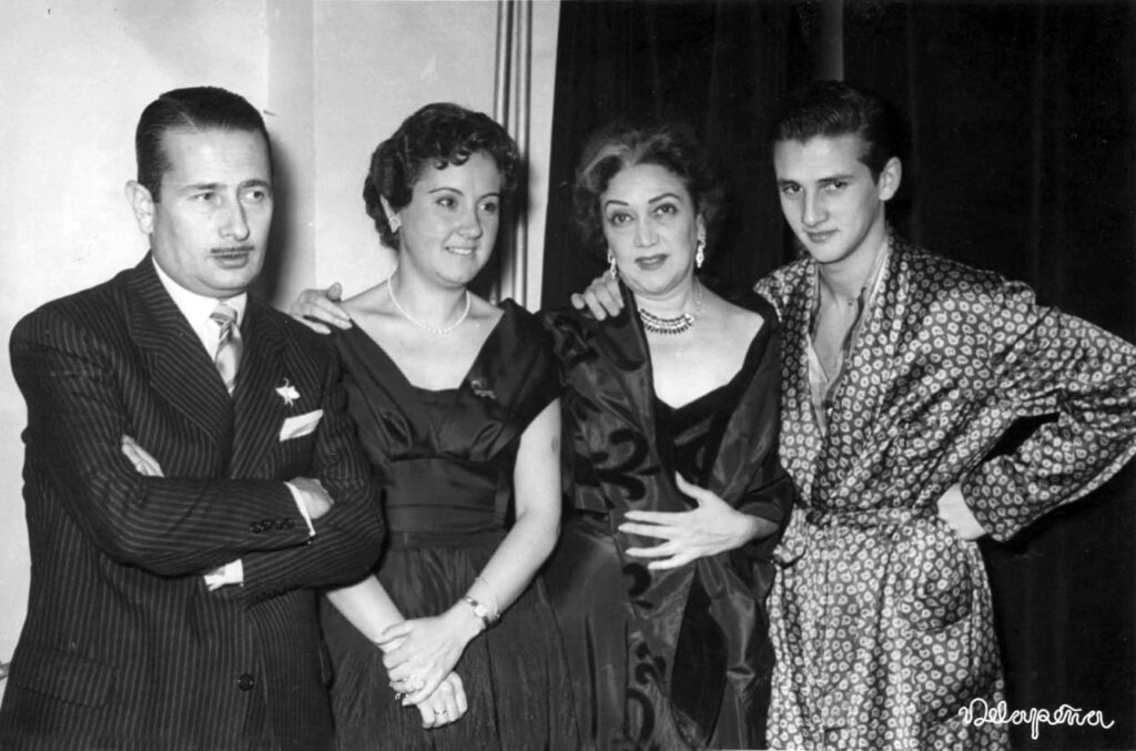 Luisa Alberca junto a Guillermo Sautier Casaseca, María Fernanda Ladrón de Guevera y su hijo Carlos Larrañaga tras el estreno de La Segunda Esposa