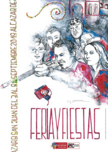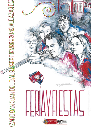 Lo que es la vida y las circunstancias, en el año 2019 hago el cartel de la Feria y Fiestas de Alcázar de San Juan recogiendo uno de mis recuerdos de juventud. En los años 70, era muy común que se pusiera un fotógrafo detrás del tira pichón y que inmortalizara el momento previo pago, este recuerdo me vino a la memoria, para elaborar el cartel que trabajé de diferentes formas plásticas. Lo basé en una foto en la que estaba con mis amigos en la feria y en la que estaba Alfredo Musulen, todavía recuerdo la cara que puso cuando vio el cartel.