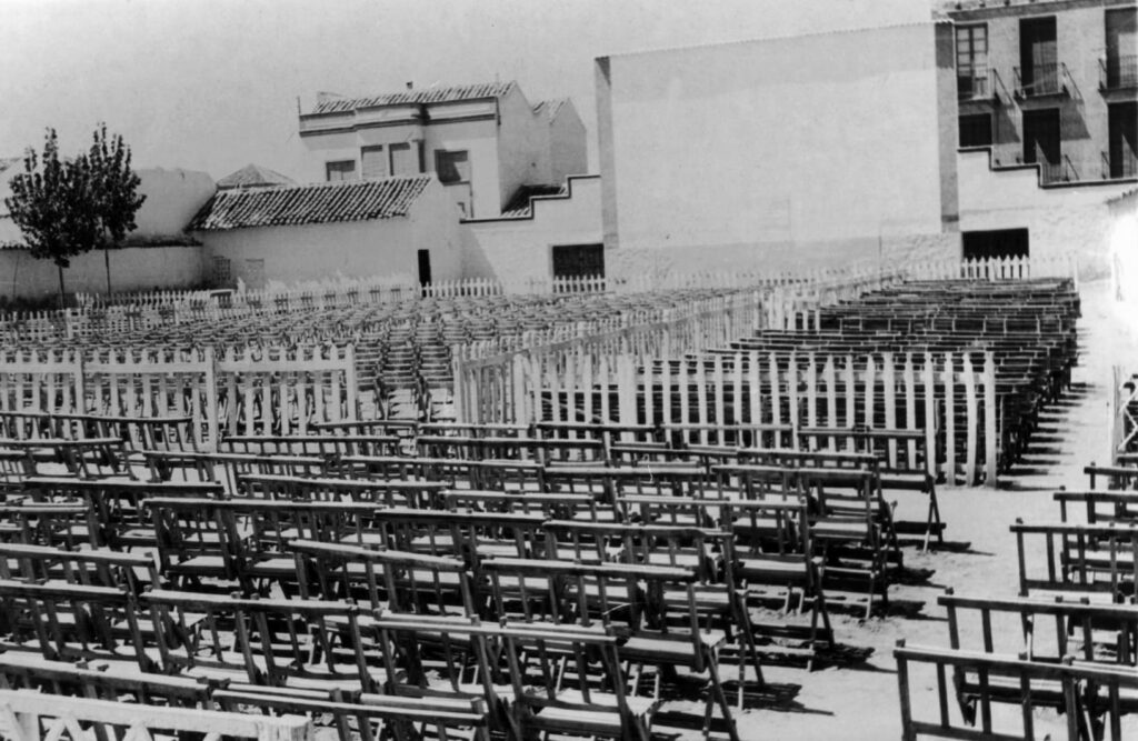 La Terraza de verano era un gran corralón, con pantalla de obra y que se veía desde la calle, algunos vecinos con patios alrededor de este cine, disfrutaban desde sus casas de las películas, subiéndose a gavilleras.